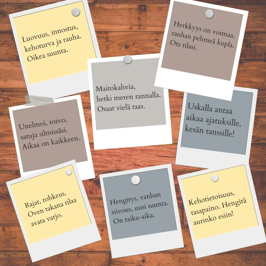 Ryhmiä ohjatessani kirjoitan usein osallistujien sanoja ylös ja luon niistä lopuksi ryhmälle ns. loppurunon. Tällä kertaa tein jokaiselle osallistujalle oman haikun. Lueskelin heidän tekstejään, kirjoitin niistä sanoja erilliselle paperille ja annoin niiden lopulta muodostua jokaiselle henkilökohtaiseksi haikurunoksi.